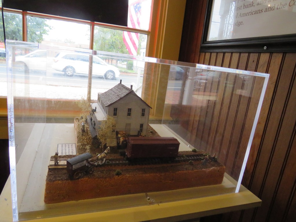Well, the Freeman Store, now known as the Freeman Store and Museum, tells the story of the town. In the museum you see items and photos and artifacts from the town. Then you see a model of the store itself from the time of the American Civil War. You see the Union Soldiers standing around, but then you see a set of railroad tracks with a wooden boxcar.