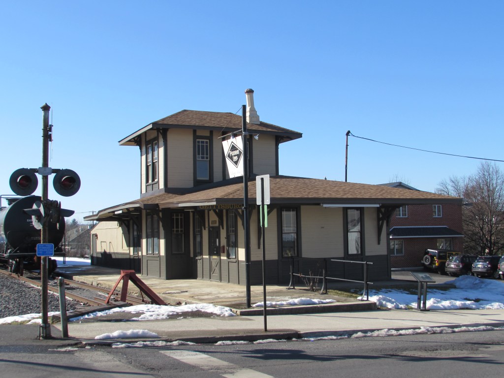 The Gettysburg and Harrisburg Train Station is located on N. Washington Street at W. Railroad Street. It is two blocks north of U.S. Route 30 and one block west of U.S. Business Route 15. Parking is metered street parking. The station is not open to the public.