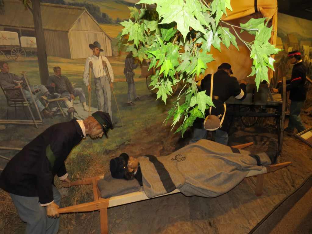 Yes. The museum is dedicated to medical procedures done during the American Civil War. As you walk through the museum, you will see how the soldiers were cared for. You see displays of the physicians working on the soldiers bandaging the wounds. You see wounded soldiers being transported by stretcher onto a cart. You come upon a particular exhibit. What is this exhibit?