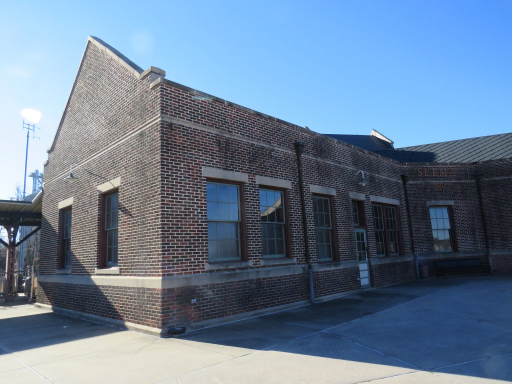 Selma is a small town, but it is a railroad town, and Union Station, built in 1924, is located at a cross track with a single track line crossing a double track line with a connecting track. Did any famous people visit here? If the name “Lady Bird Johnson”, the wife of Lyndon Johnson sounds familiar, she came here to campaign for her husband in 1964 after the Democratic National Convention to campaign for her husband. During its heyday, this station saw much passenger traffic, but as railroad passenger service declined, service at this station ceased.