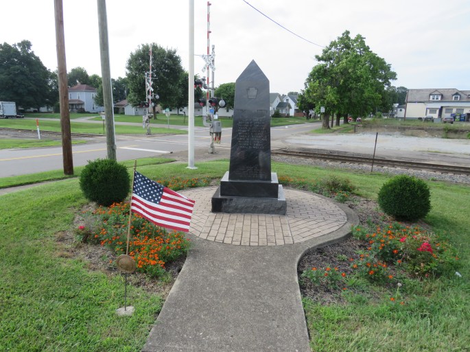 Today, a memorial is at the railroad crossing at Ohio Route 93 in the center of West Lafayette, Ohio. The memorial has the names of those of the 109th Field Artillery Battalion who lost their lives in the wreck. The memorial also commemorates those in the region who were involved in the rescue efforts. The memorial consists of an obelisk with the names of the soldiers who lost their lives and a commemoration of the locals who helped in the rescue efforts, and small section of railroad track, and an artillery gun.