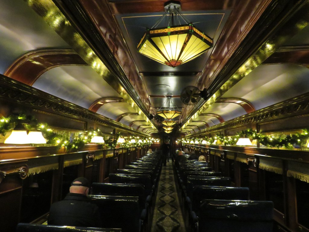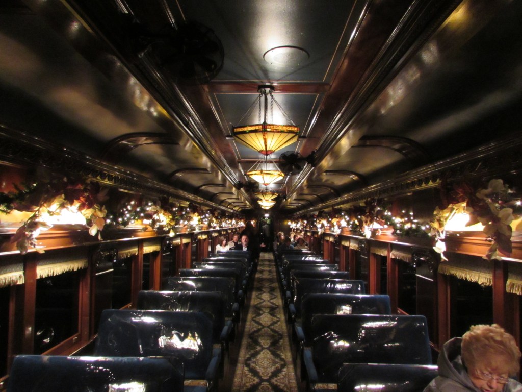 It is December 31, 2025. I arrive at 10:00pm and park my car in the parking lot. As soon as I step out of my car, everything changes. I see a clock, and it says, ‘It is 10:00pm. The day is December 31, 1925’. Wait! What happened? I heard somebody say, “We will soon say goodbye to 1925 and hello to 1926.” Did I go back in time? I walk to the Victorian train station to get the ticket to ride the train. I look around and see Model T Fords arriving at the station. I see other classic cars, but they are not classic cars. It is 1925. I board the train, and I go to my seat at a table in a first class car.