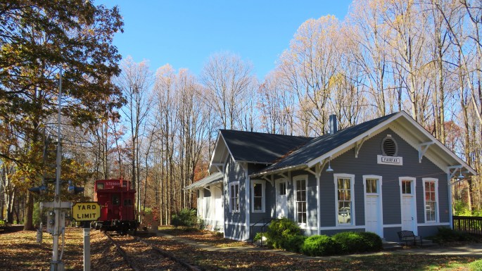 Wrong! The elegant train station remains. It may no longer be an active train station, but it has been preserved as a museum. You can walk the old train platforms. The ticket office and waiting rooms are exhibit space showing the story of not just the train station but the happenings at Valley Forge. As for the train tracks, the Reading Railroad no longer runs along here, but, if you are fortunate enough, Norfolk Southern Railway may reward you with a passing train.