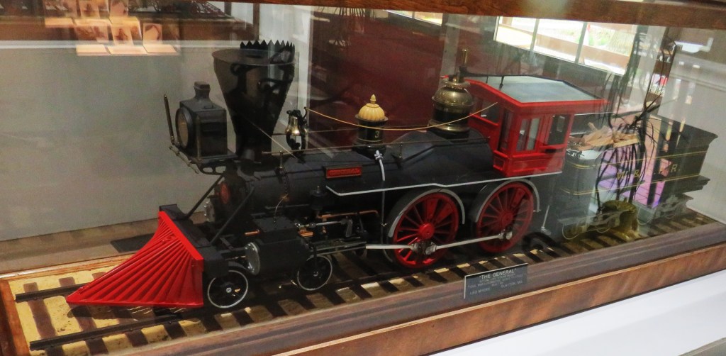 You walk through the Earl C. Lindberg Automotive Center seeing the old cars, and then you see an old train station. On the outside, you see a model train display. On the inside, you see models of locomotives and rolling stock to include a model of the ‘General’, a steam locomotive that was part of a chase in the U.S. state of Georgia during the American Civil War.