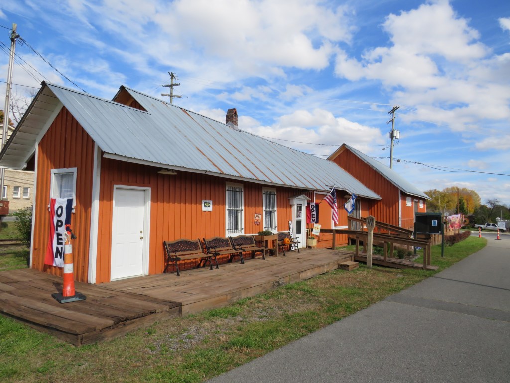 The train depot is now an art store selling locally made at. An old railroad line that passes by the old train station is the only reminder of Oak Hill being a railroad town today.